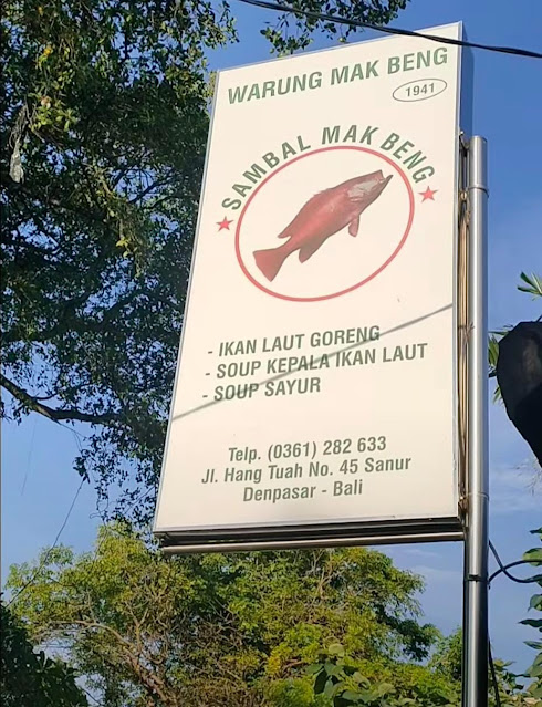 Tak jauh dari pantai sanur, ini cocok banget buat kalian yang seharian main di pantai untuk singgah di warung yang satu yang menawarkan berbagai macam jenis makanan seperti nasi, ikan dan sup kepala ikan dengan harga mulai dari Rp. 50 ribu, eitss kalian juga bisa menikmati berbagai minuman seperti es kelapa, soda , es jeruk dan lain sebagainya dengan harga mulai dari Rp. 6.000.